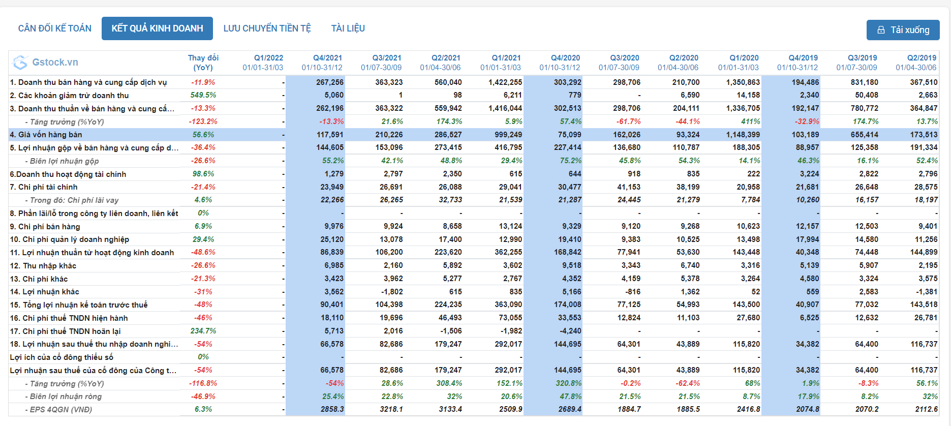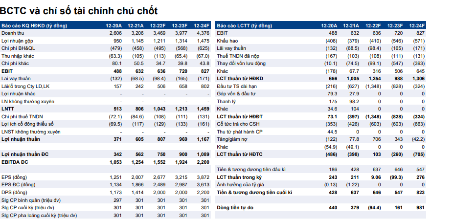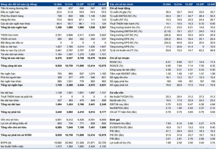 duy trì dự báo lợi nhuận thuần và doanh thu thuần năm 2022 lần lượt đạt