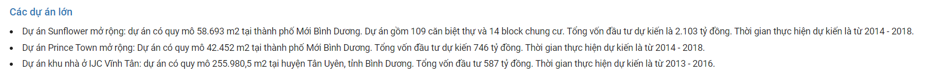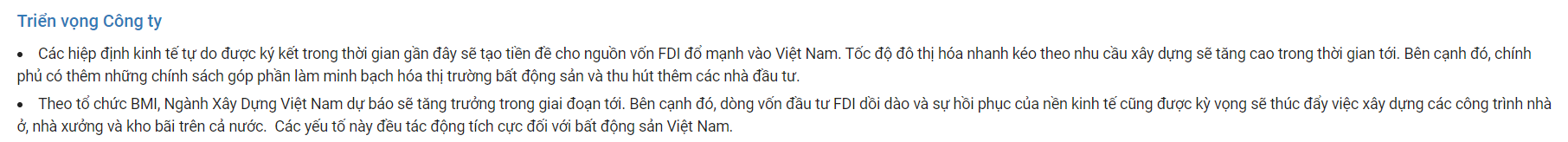 các dự án đầu tư, bao gồm NDV giai đoạn 2 và GML giai đoạn 2. Kế hoạch chi