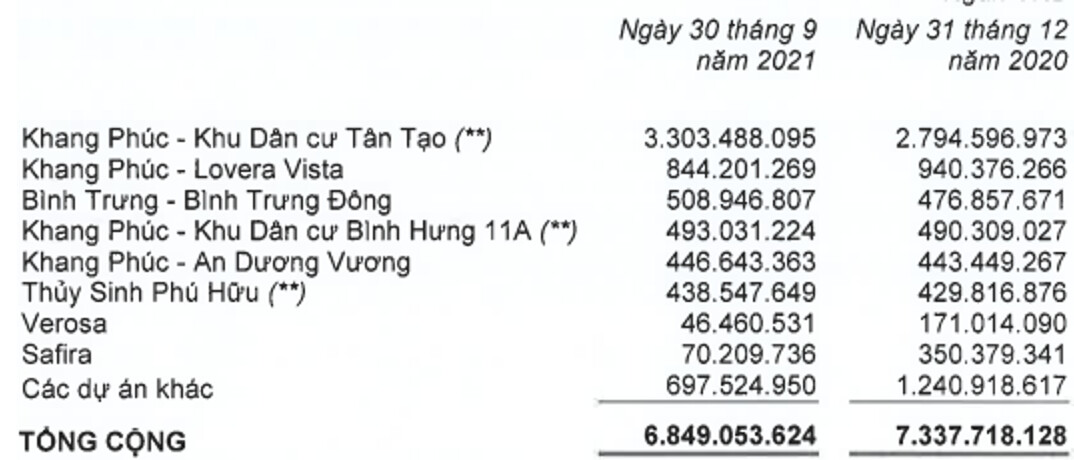 Đây là dự án đã và đang được bàn giao đến khách hàng từ năm 2020 đến nay. Hiện tại trên bctc quý 3-2021 tồn kho còn lại là 46.4 tỷ đồng, giảm 124.6 tỷ đồng so với đầu năm. (Hình 2)
