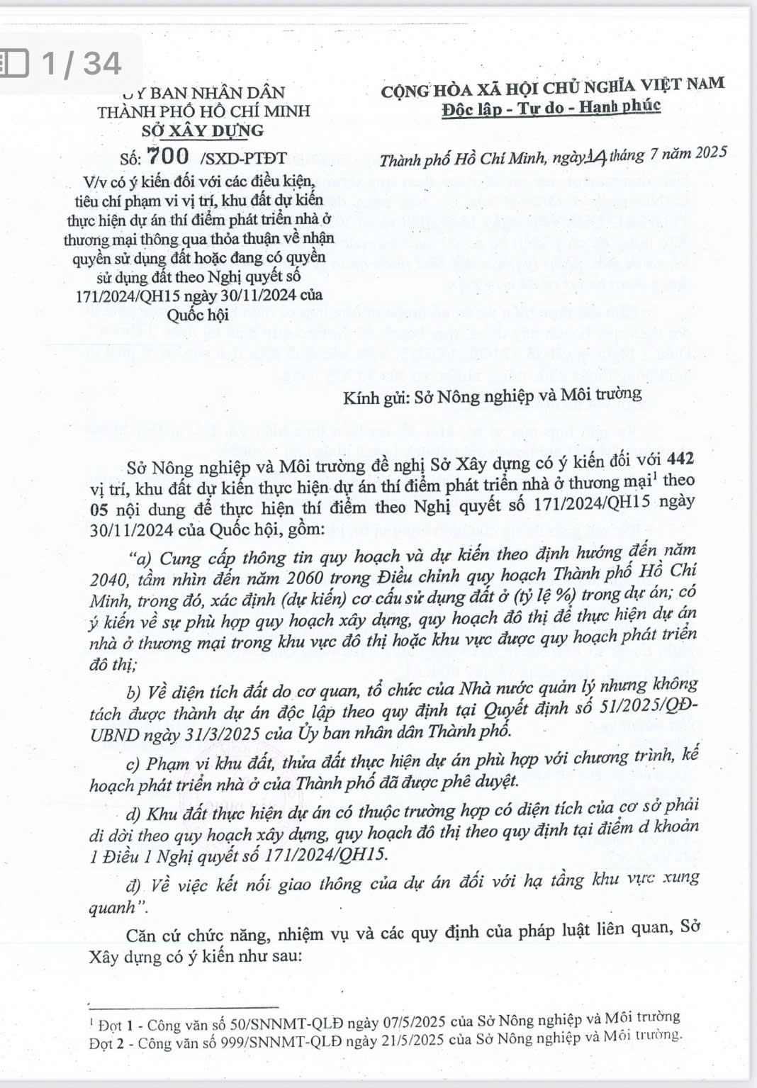Sở Xây dựng vừa có ý kiến về quy hoạch xây dựng đối với 442 khu đất dự kiến thực hiện dự án nhà ở thương mại thí điểm, thông qua thỏa thuận về nhận quyền sử dụng đất hoặc đang có quyền sử dụng đất theo Nghị quyết 171/2024 của Quốc hội. StockLine gửi cả nhà cập nhật về nội dung này. Nhìn chung, 2025 vẫn là một năm có nhiều chuyển động tích cực đối với các doanh nghiệp Bất động sản, bài viết đầy đủ mời mọi người đọc tại Tâm điểm Thị trường 16/07/2025 - Thêm nhiều Doanh nghiệp BĐS "hưởng lợi" từ Nghị quyết 171