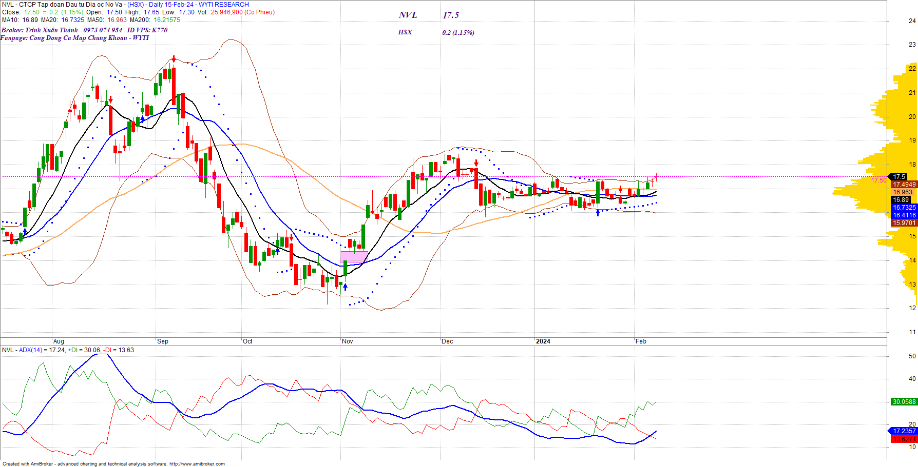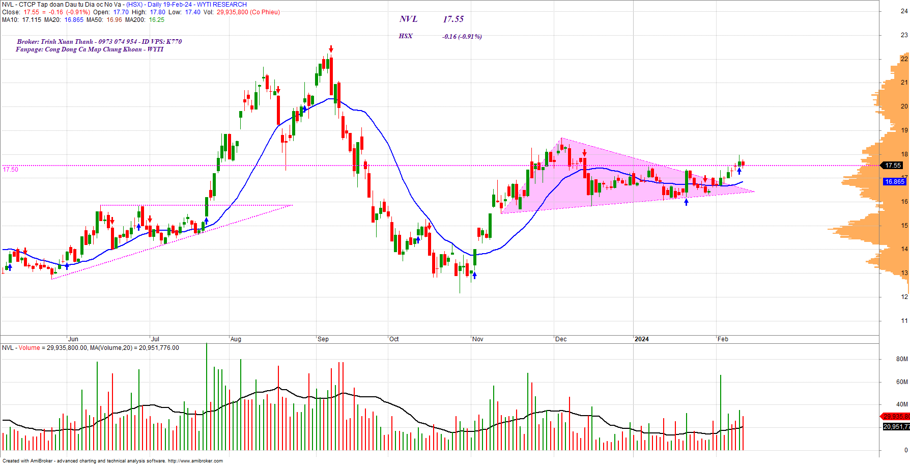 Sau phiên 19/2, NVL vẫn đang tích lũy tốt trên vùng 17.5 quan trọng và test lại thành công, lực bán không quá nhiều.