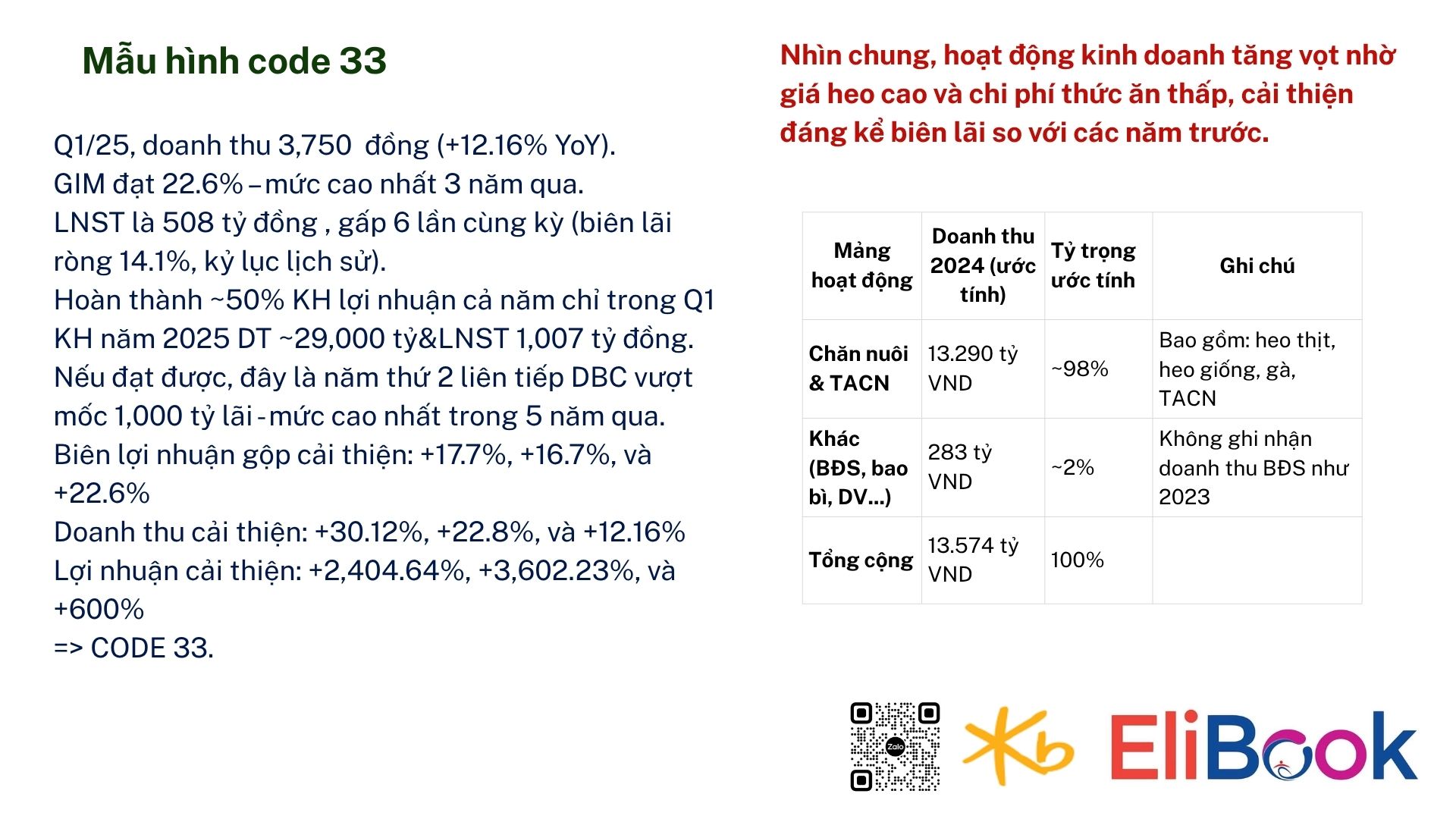 Giá heo Q2/2025 là 69.000 VND/kg, ước tính ~580k–725k con heo thương phẩm, LNST quý 2 có thể đạt 400–500 tỷ. Đây là mức tiêu thụ khá hợp lý cho 1 quý, vì thường heo nuôi theo chu kỳ ~4 tháng và không xuất toàn bộ trong 1 quý.