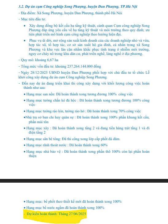 Cụm công nghiệp Song Phượng (Đan Phượng) và Hồng Dương (Thanh Oai):
