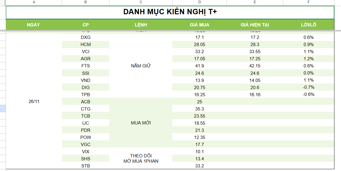 Danh mục đầu tư ngày 20.11