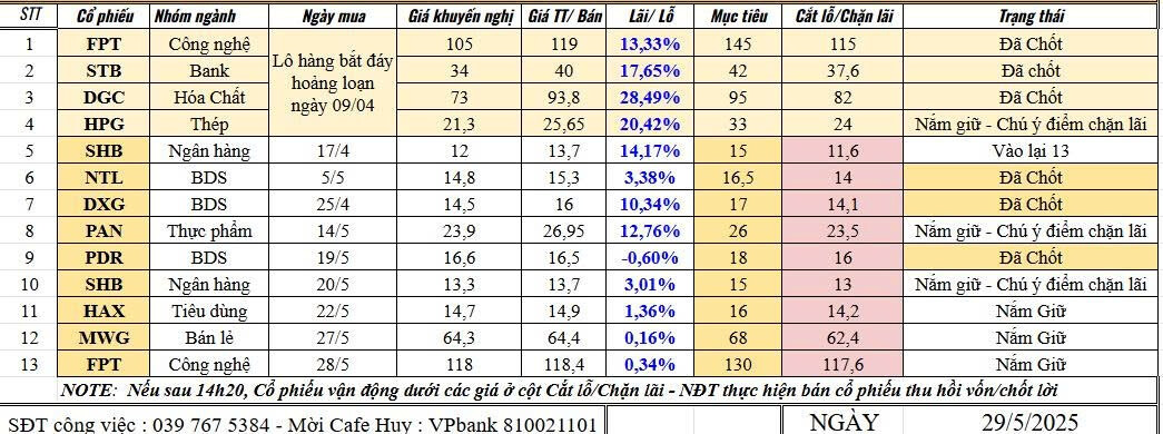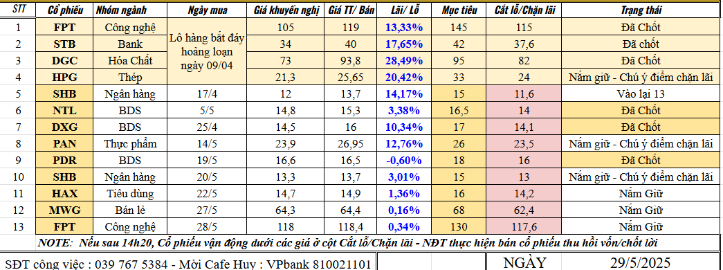 NHẬN ĐỊNH THỊ TRƯỜNG NGÀY 29/05/2025