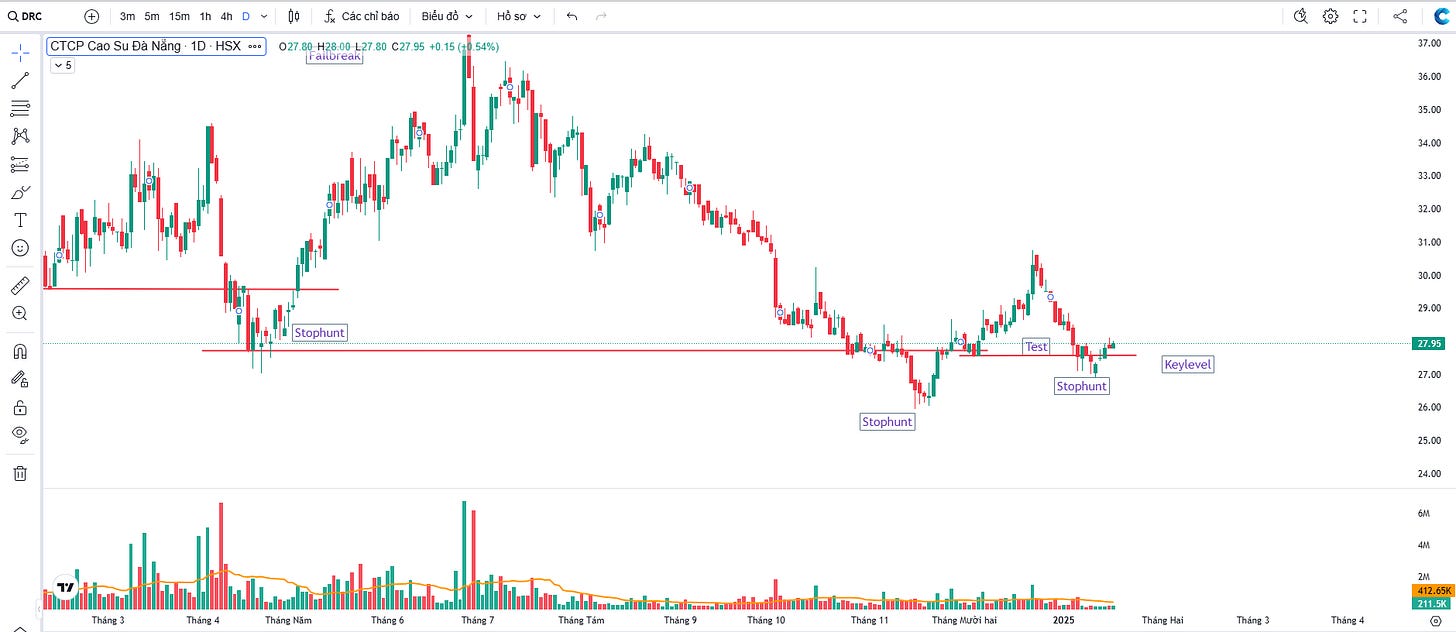 GMD DRC và MSN đều ghi nhận hành động giá bất thường Stophunt cho điểm mua ngắn hạn theo phương pháp giao dịch riêng của QSCK. Mức giá giải ngân được lấy theo giá đóng cửa phiên giao dịch gần nhất 17/01/2025 là: **GMD (62.000đ/cp), MSN (65.900đ/cp và DRC (27.950đ/cp).