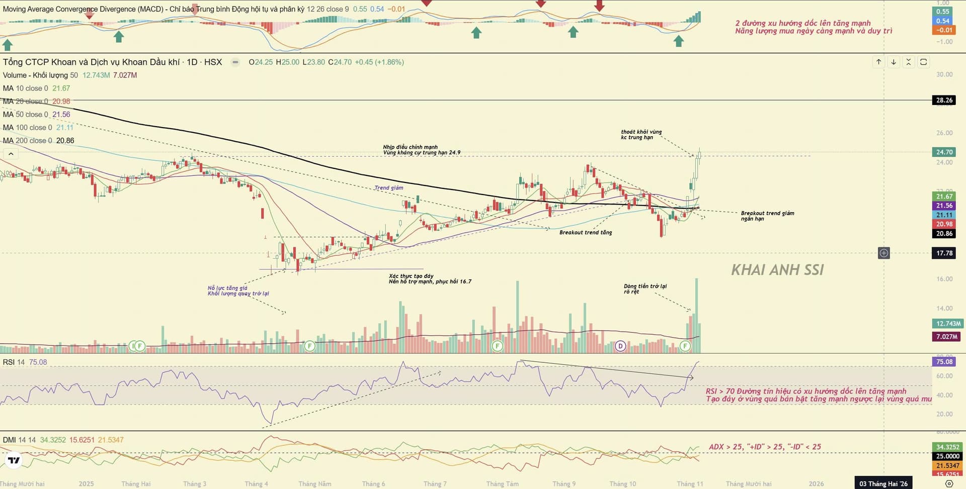 Chỉ trong nửa cuối tháng 10, PVD và PVS đã tăng 20–28%, PLX, OIL cũng tăng 8–10% – cho thấy dòng tiền rõ ràng đang quay trở lại nhóm năng lượng.