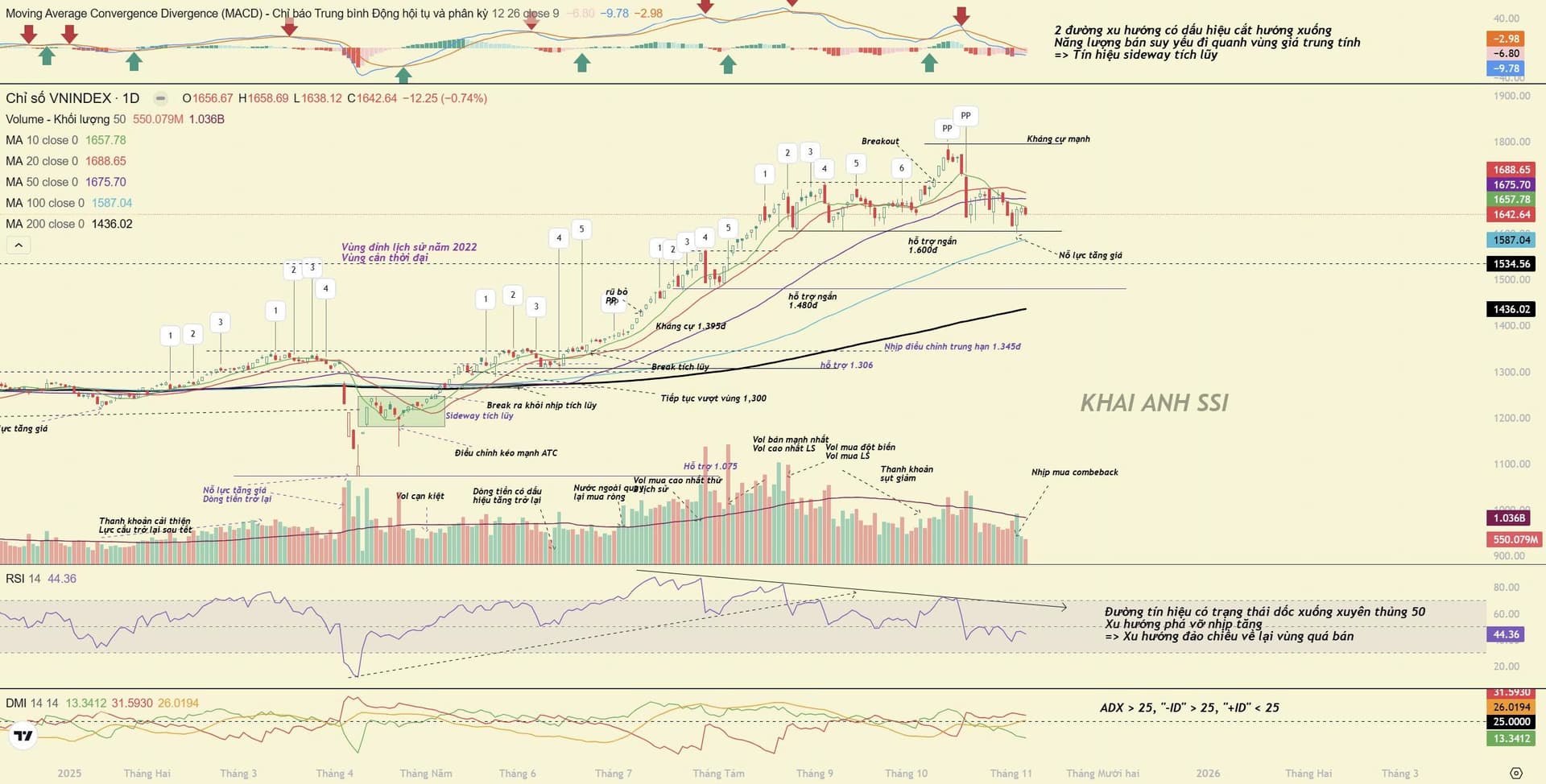 - VN-Index rung lắc mạnh quanh vùng 1,640–1,650, chưa vượt được kháng cự 1,660–1,670.