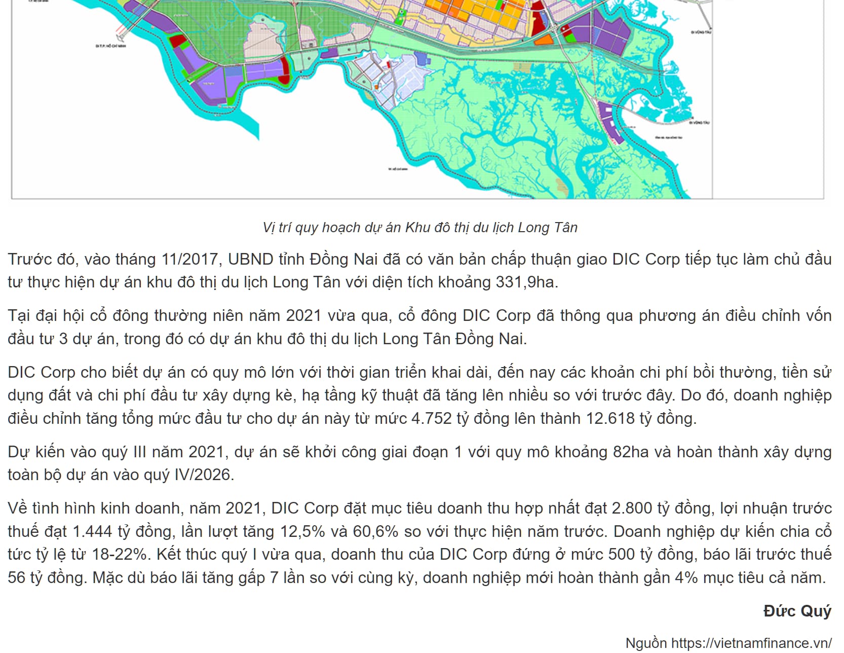 Hơn 300ha Long Tân của Dig sát thủ thiêm thì giá nào cho vừa