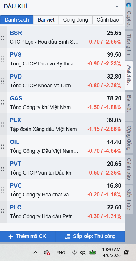 Trong giai đoạn hiện tại, mình thấy một số cổ phiếu nhóm ngành dầu khí sau một nhịp tăng mạnh từ tháng 12/2025 đang có xu hướng giảm trở lại nền cũ, thậm chí, một số cổ phiếu còn chưa thực sự bước vào giai đoạn giảm mạnh.