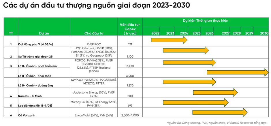 Ngoài ra, ngành dầu khí trong nước cũng sẽ có thêm những cơ hội khi nguồn cung khí đốt được bổ sung từ dự án LNG Thị Vải với khả năng cung cấp 1 triệu tấn (1,4 tỷ m3 khí); Kinh tế trong nước hồi phục, thương mại vận tải tăng làm tăng nhu cầu tiêu thụ xăng dầu trong nước. Bên cạnh đó, các dự án điện khí LNG nhập khẩu, dự án NLTT trên biển, sản xuất Amoniac xanh, Hydrogen tiếp tục được Chính phủ, Bộ ngành quan tâm hoàn thiện các cơ chế chính sách để sớm đưa vào thực hiện đầu tư.