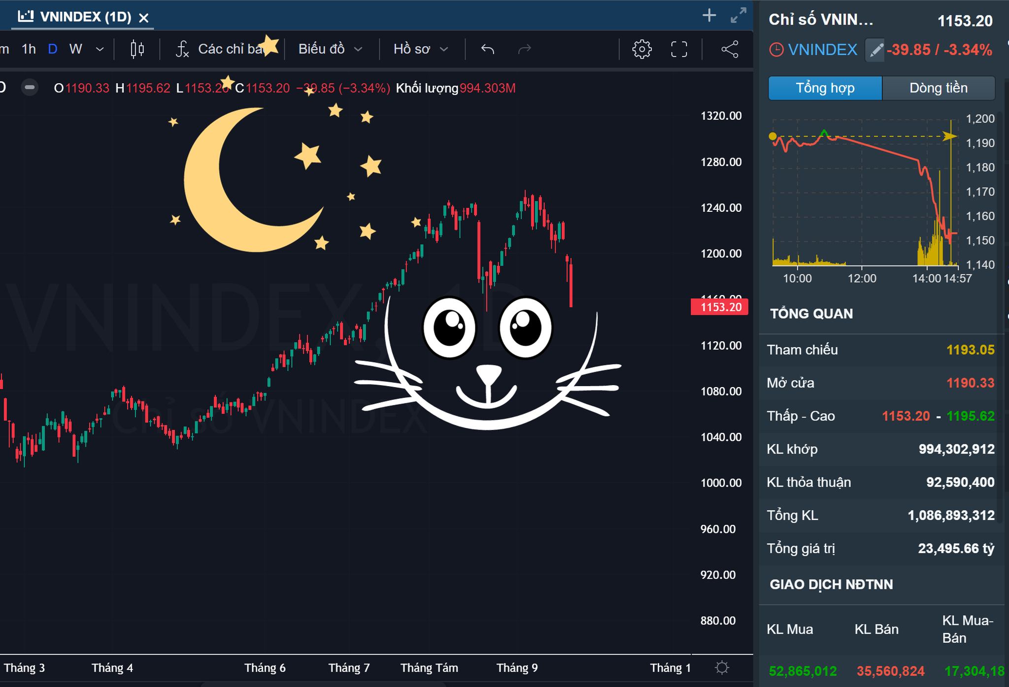 vâng, em kịp bán mấy con lãi và lỗ nhẹ nên giờ tài khoản tương đối ổn, nhưng sợ mn bị lỗ nhiều ko nỡ cut ấy.