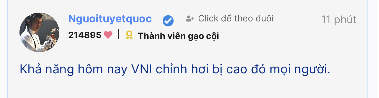 Khả năng hôm nay VNI chỉnh hơi bị cao đó mọi người.