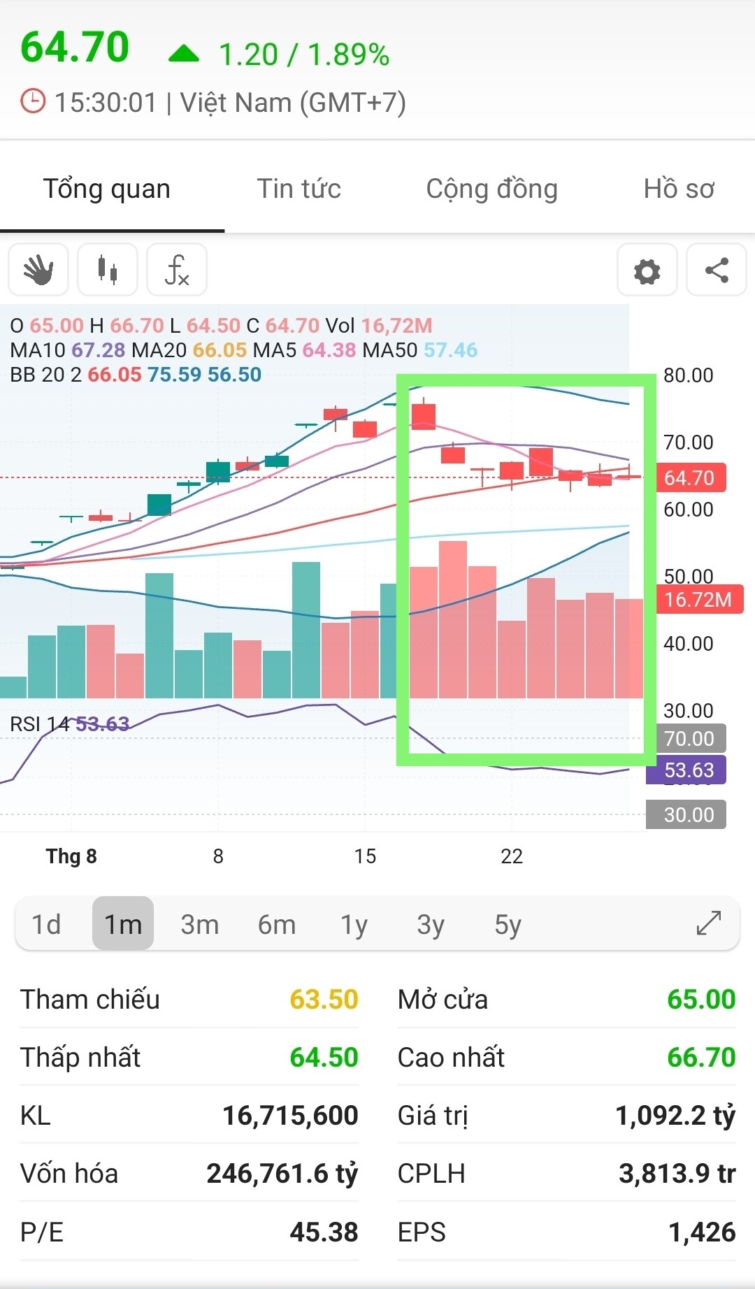 Thế mà, sau 8 ngày nằm xụi lơ đỏ loè, chỉ số này chỉ có hơn 50 thôi.