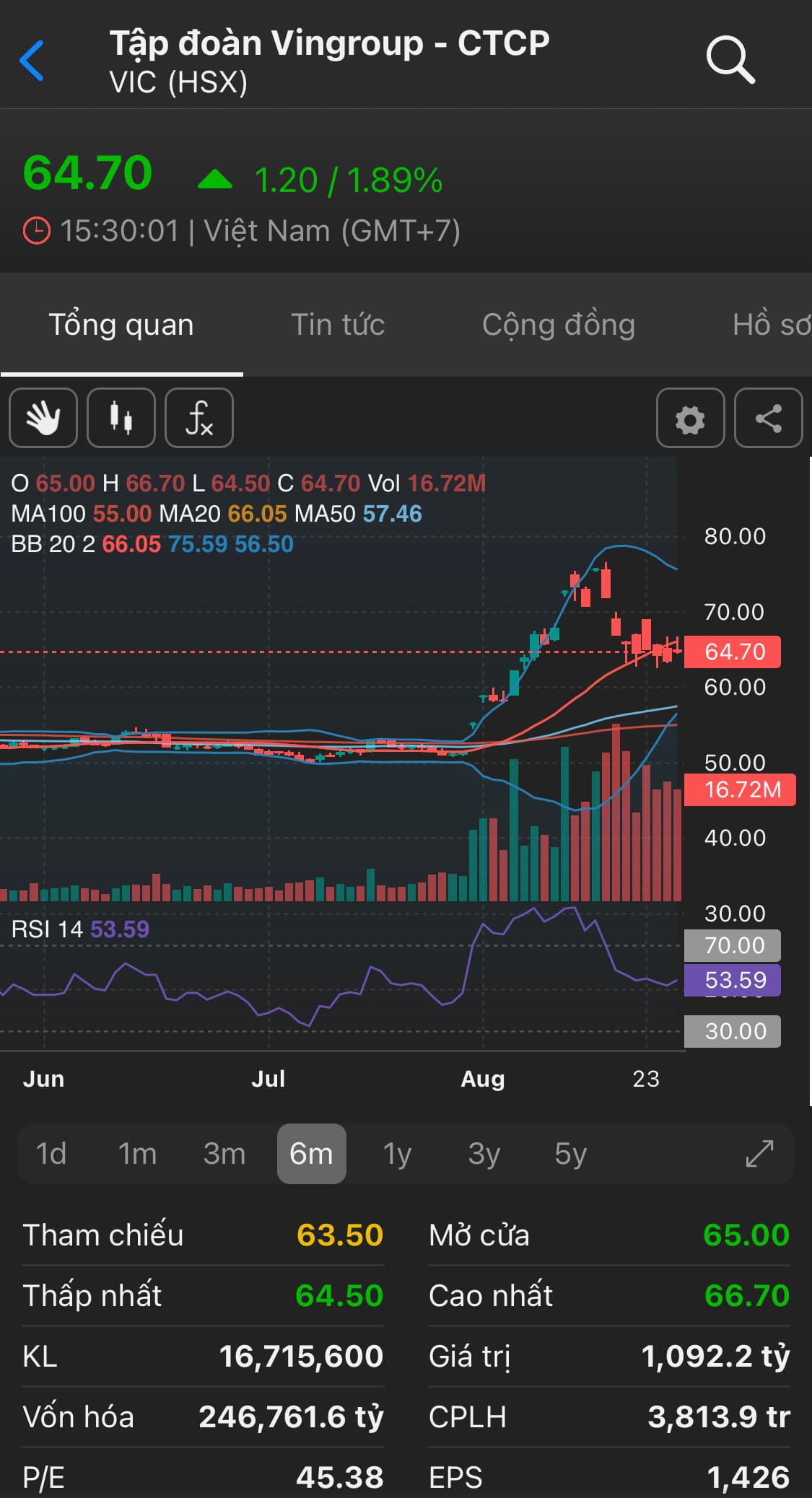 Xây nền mới 62-63 cho đến khi RSI về dưới 45 rồi bật cùng được em. Kéo cho lên vùng quá bán nữa rồi tha hồ chốt.