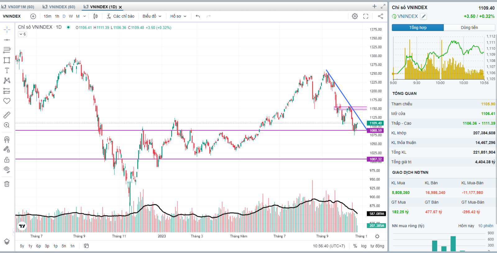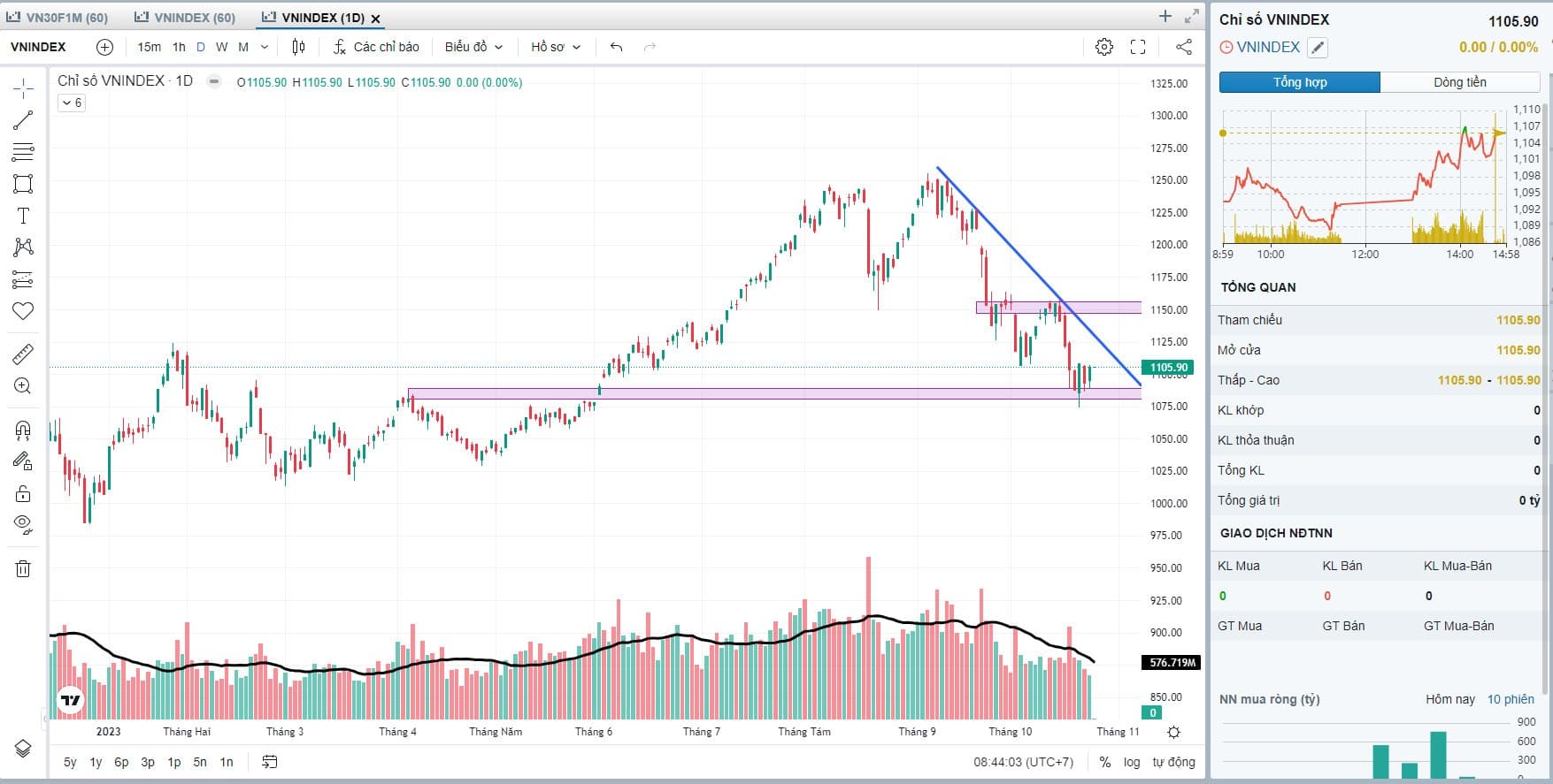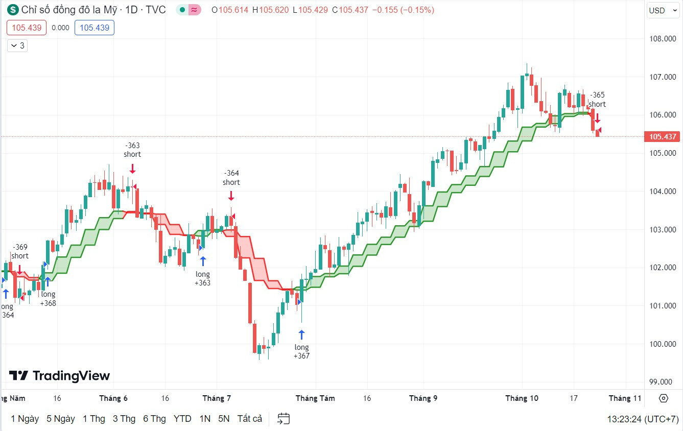Khối lượng cao ở các đợt tăng giá và thấp ở các đợt điều chỉnh.