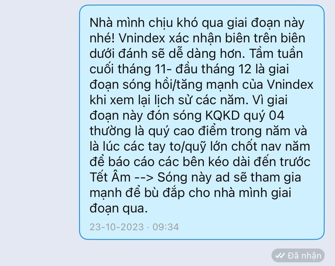 Tháng 11 sẽ là tháng mở ra nhiều cơ hội. Cá nhân trước đó kỳ vọng rơi vào 2 tuần cuối tháng 11 nhưng với đà rơi hiện tại thì ad nghĩ sẽ đến sớm hơn. Vì Vnindex đã chiết khấu xong và trước nhiều tin xấu nhất rồi.