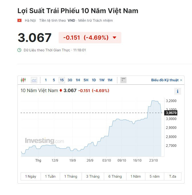 - Vietnam Bond Yield hôm nay giảm hơn 1 điểm cơ bản xuống 3.11%. Tỷ giá USD/VND tăng 50 đồng lên 24,610 trên thị trường tự do, sau khi USD Index tăng mạnh và trở lại mức 106.