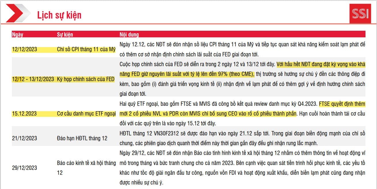 Hôm nay 15.12.2023 là hạn cuối cơ cấu quỹ, và họ đã tiến hành trong các phiên gần nhất. (Hai quỹ ETF ngoại, bao gồm FTSE và MVIS đã công bố kết quả review danh mục kỳ Q4.2023. FTSE quyết định thêm mới 2 cổ phiếu NVL và PDR còn MVIS chỉ bổ sung CEO vào rổ cổ phiếu thành phần).
