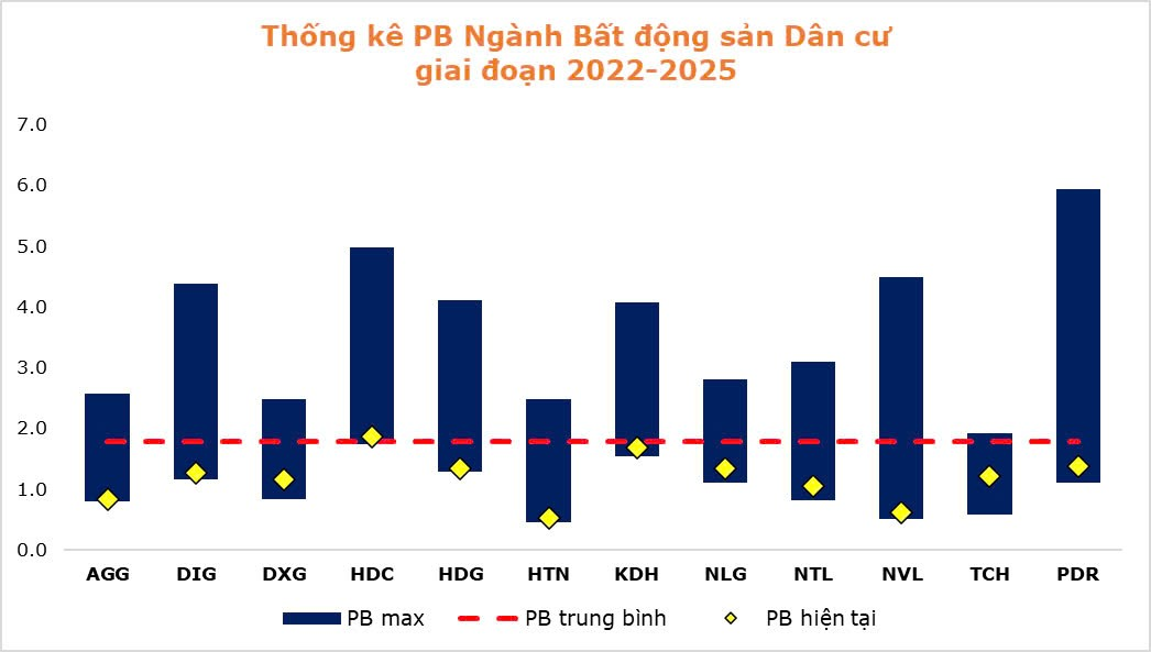 - P/E ngành khoảng 12-13 lần (loại bỏ nhóm Vin), thấp hơn công nghệ (20-22 lần) và tương đương chứng khoán (14-16 lần).