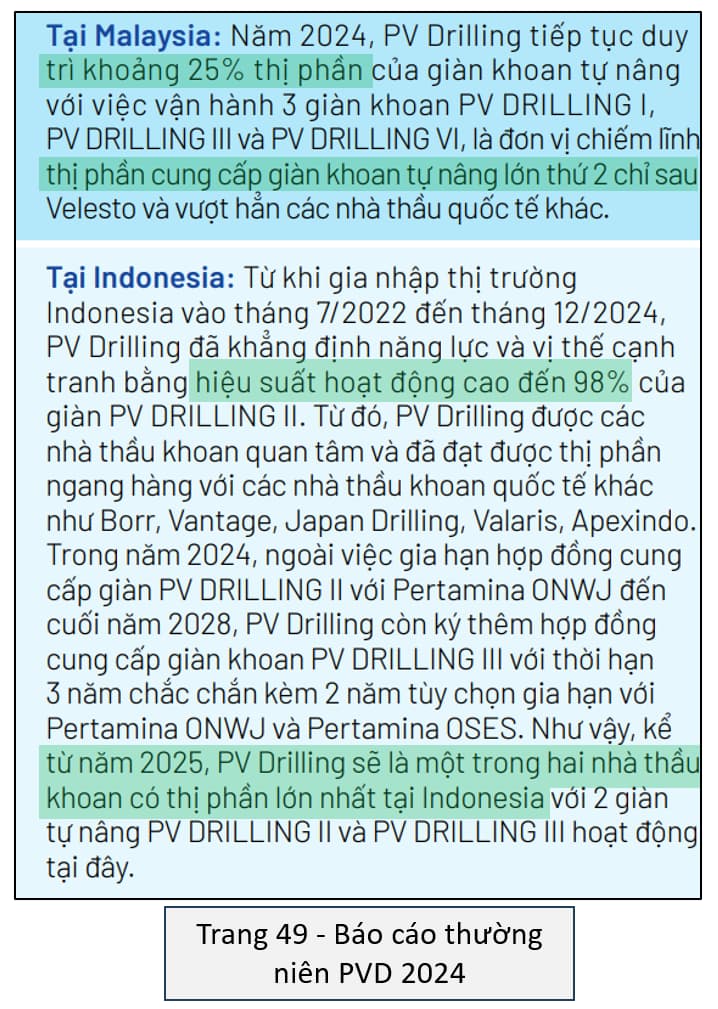 Đây là lợi thế cạnh tranh hiếm có của doanh nghiệp, thể hiện vị thế dẫn đầu và sức ảnh hưởng đáng kể của PVD trong ngành khoan dầu khí khu vực.