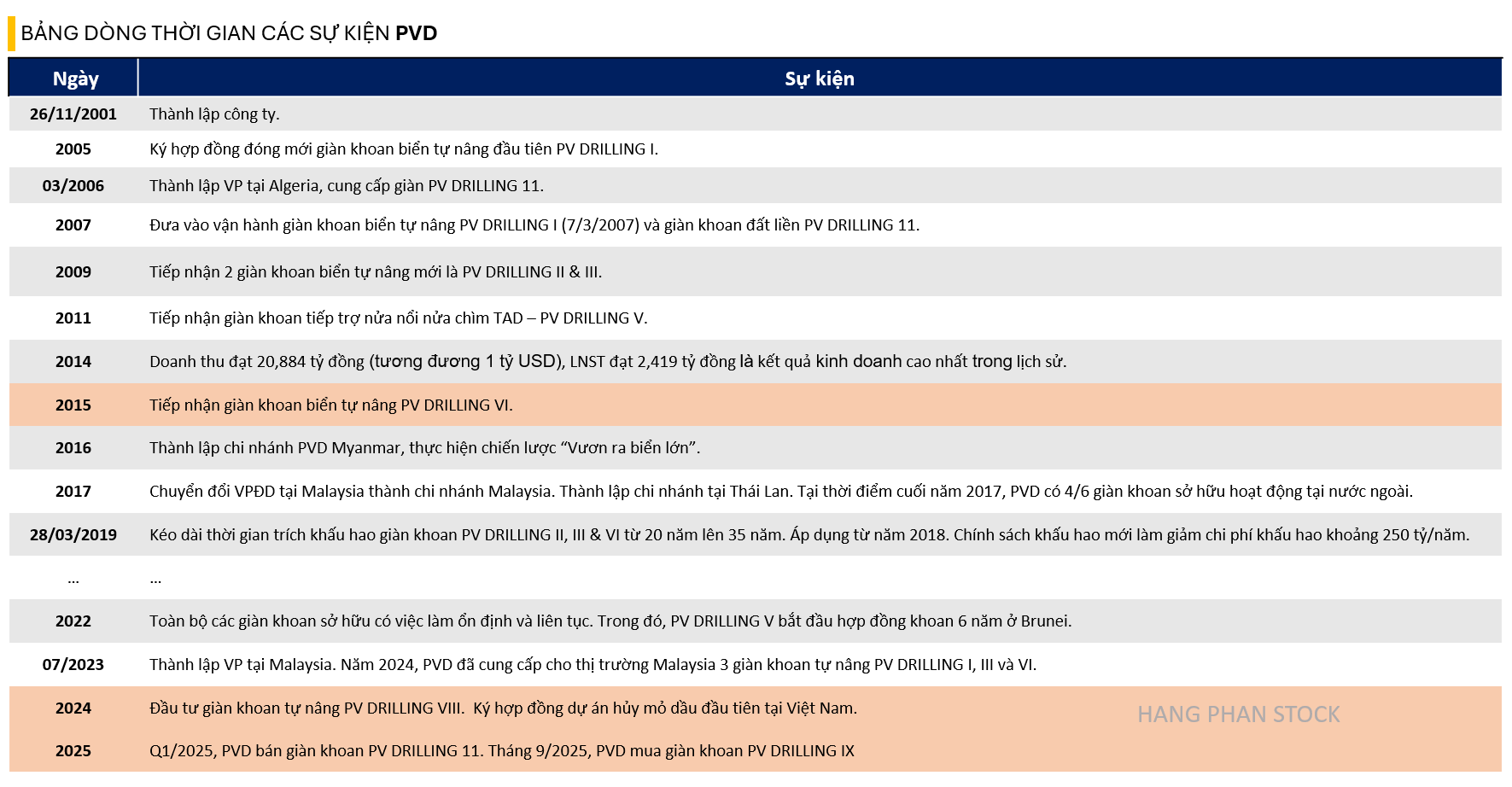 - PVD (Tổng CTCP Khoan và Dịch vụ Khoan Dầu khí ) được thành lập vào tháng 11/2001