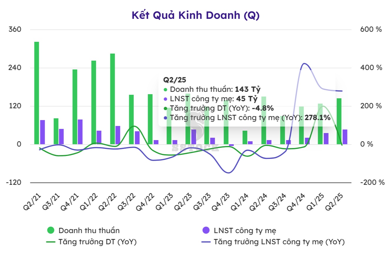 KSB đã ghi nhận kết quả lợi nhuận sau thuế tăng trưởng vượt bậc trong Quý 2/2025, Quý 2/2025, KSB ghi nhận doanh thu đạt 143 tỷ đồng (-5% svck), LNST đạt 45 tỷ đồng (+277% svck). LNST tăng trưởng tích cực nhờ giá đá xây dựng trong kỳ tăng 8-11% so với đầu năm, cùng với đó là nhu cầu VLXD tăng từ các dự án hạ tầng trọng điểm. Lũy kế 6 tháng đầu năm 2025, doanh thu đạt 270 tỷ đồng (+40 svck), LNST đạt 81 tỷ đồng (+282% svck), hoàn thành 40% kế hoạch doanh thu và 59% kế hoạch lợi nhuận năm.