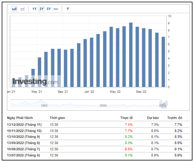 Nguyên nhân khiến lạm phát Mỹ tăng mạnh nhất trong hơn 40 năm qua là do sự tăng mạnh của giá dầu, giá hàng hóa và giá năng lượng tăng mạnh. Giá dầu Brent tăng mạnh lên gần 120 USD/thùng vào tháng 3/2022 khiến CPI Mỹ đạt con số kỷ lục 9.1%