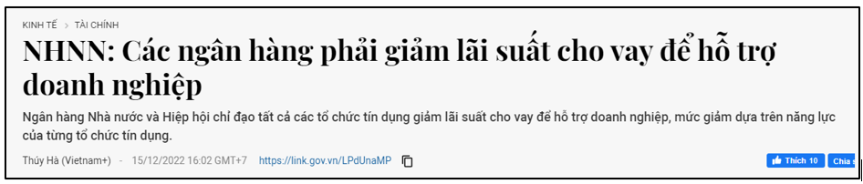 1. Các ngân hàng giảm lãi suất cho vay hỗ trợ các doanh nghiệp
