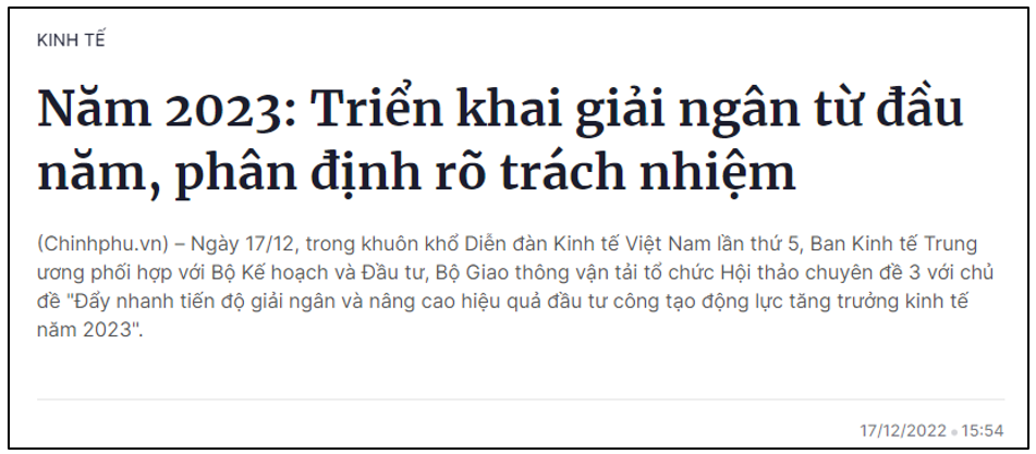 - Quốc hội đã thông qua kế hoạch đầu tư công năm 2023 với tổng số vốn trên 700.000 tỷ đồng, tăng khoảng 25% (khoảng 140.000 tỷ đồng) so với kế hoạch năm 2022 và tăng khoảng 260.000 tỷ đồng so với kế hoạch năm 2021 (năm đầu tiên của kế hoạch đầu tư công trung hạn 2021-2025).