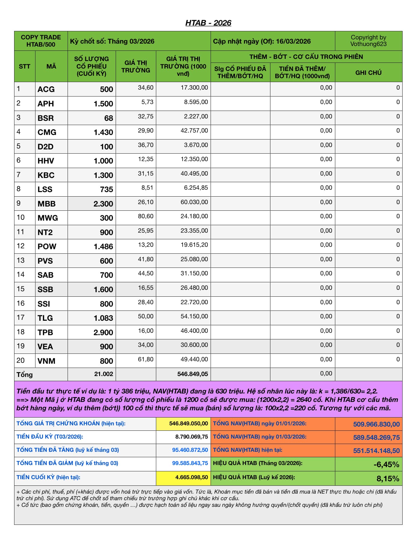 Nếu bạn dtu chứng khoán chưa có hiệu quả. Hãy xem xét HTAB như là 1 giải pháp cho mình. Chi phí để sử dụng: Rẻ nhất ở tt rồi. Còn hiệu quả, tự thực tiễn chứng minh.