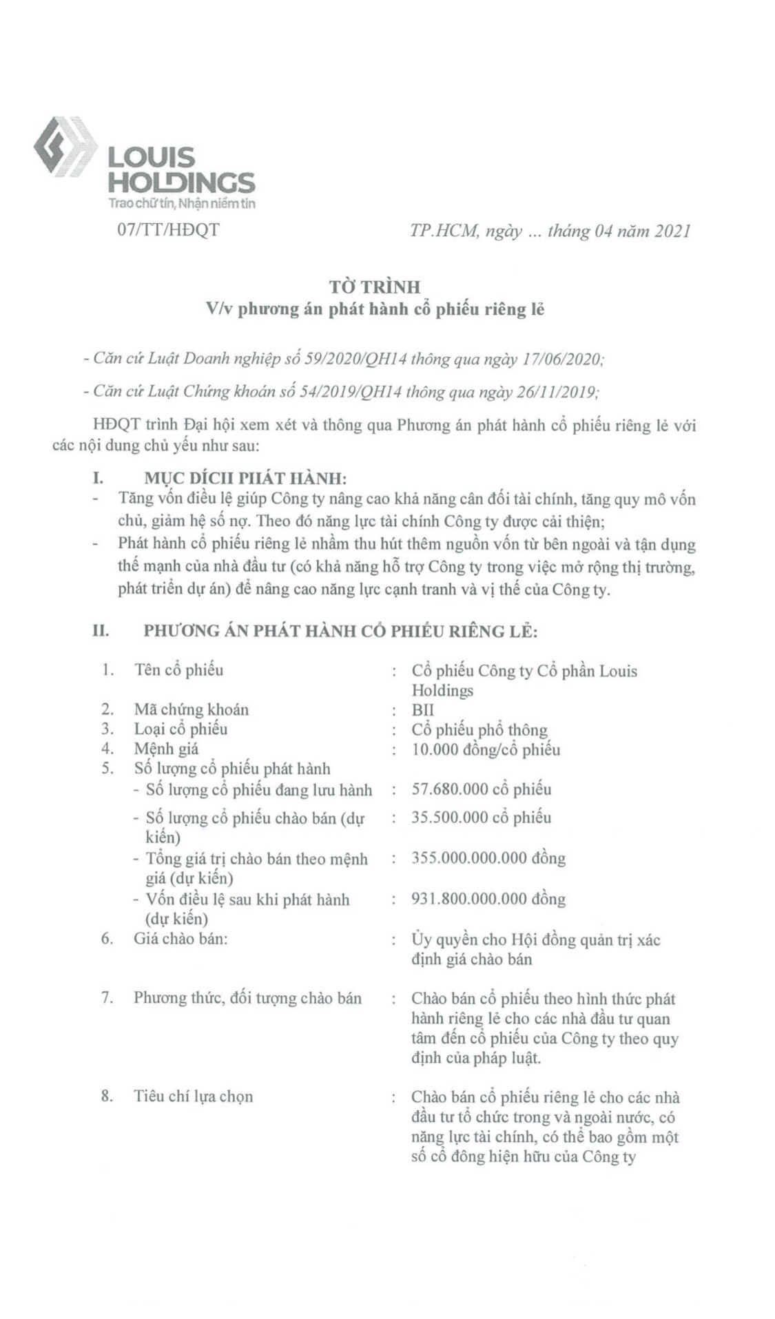 BII đầu tư dài hạn chứ không Pr