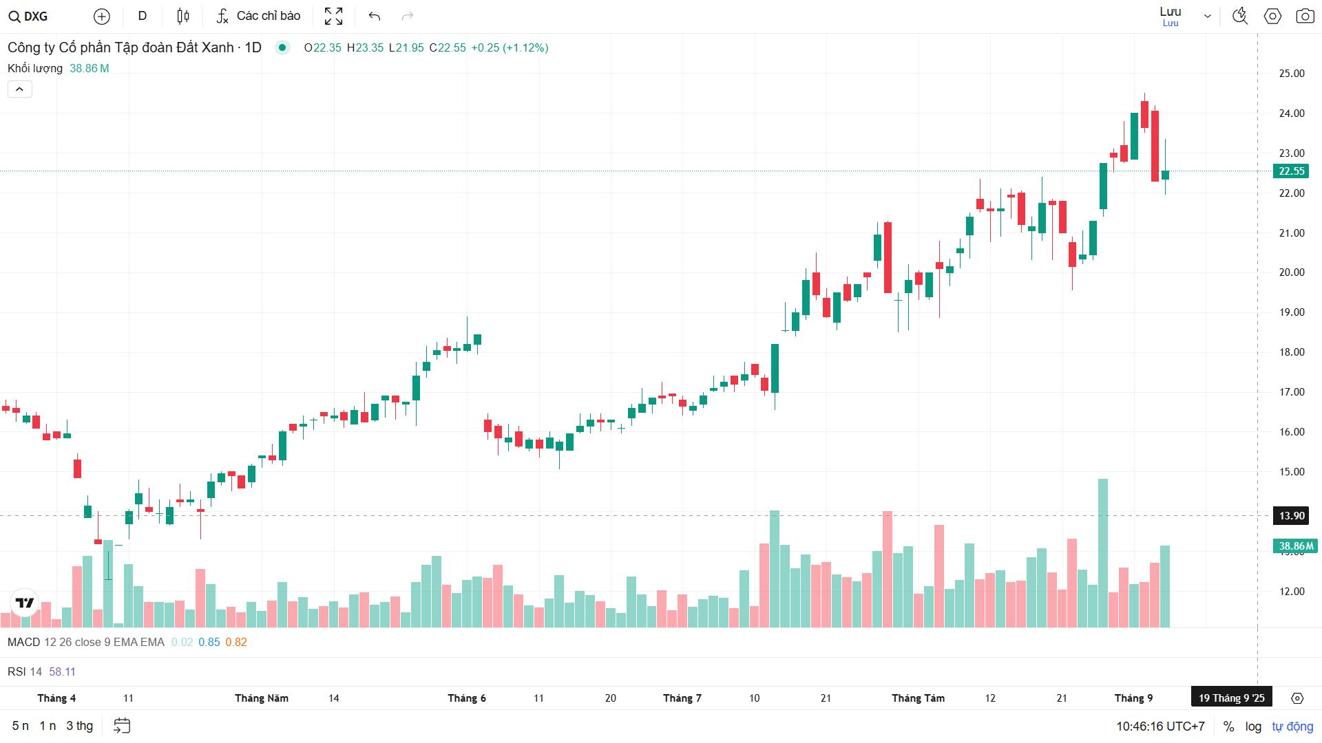 Thông tin về dự án mới đã tiếp tục tạo động lực cho cổ phiếu DXG, vốn đã ghi nhận đà tăng 112,2% kể từ tháng 4. Kết thúc phiên giao dịch ngày 8/9, mã này ngược dòng thị trường chung khi đóng cửa ở mức giá 22.550 đồng/cổ phiếu.
