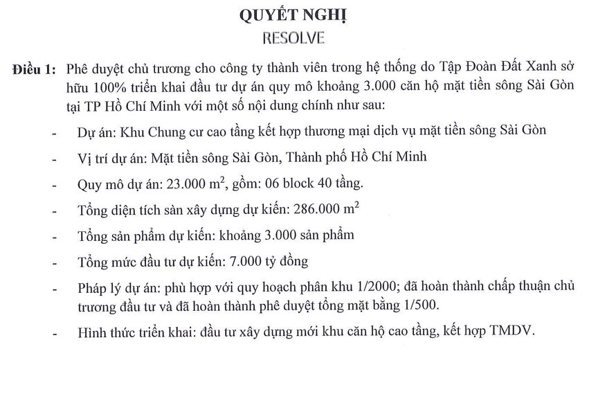 Theo nghị quyết ban hành ngày 8/9/2025, HĐQT Tập đoàn Đất Xanh (mã chứng khoán DXG) đã thống nhất chủ trương cho một công ty con do tập đoàn sở hữu 100% vốn triển khai dự án khu căn hộ cao tầng kết hợp thương mại – dịch vụ tại TP.HCM.