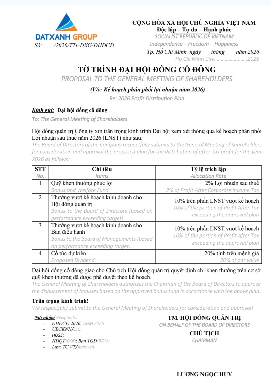 DXG có thông báo họp ĐHCĐ chưa các bác, ko biết năm nay dự kiến lãi bao nhiêu chứ dự án đang bán thấy hơi nhiều