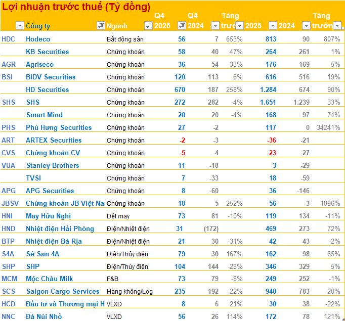 Cập nhật BCTC quý 4/2025 chiều ngày 20/1: Loạt doanh nghiệp ồ ạt công bố, một DN bất động sản báo lãi tăng hơn 650%