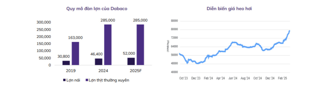 Chúng tôi đánh giá triển vọng của Dabaco trong năm 2025 vẫn rất khả quan. Giá lợn hơi dự báo sẽ duy trì ở mức cao, cùng với việc mở rộng quy mô đàn và vaccine ASF dự kiến được thương mại hóa, giúp công ty tiếp tục tăng trưởng mạnh.