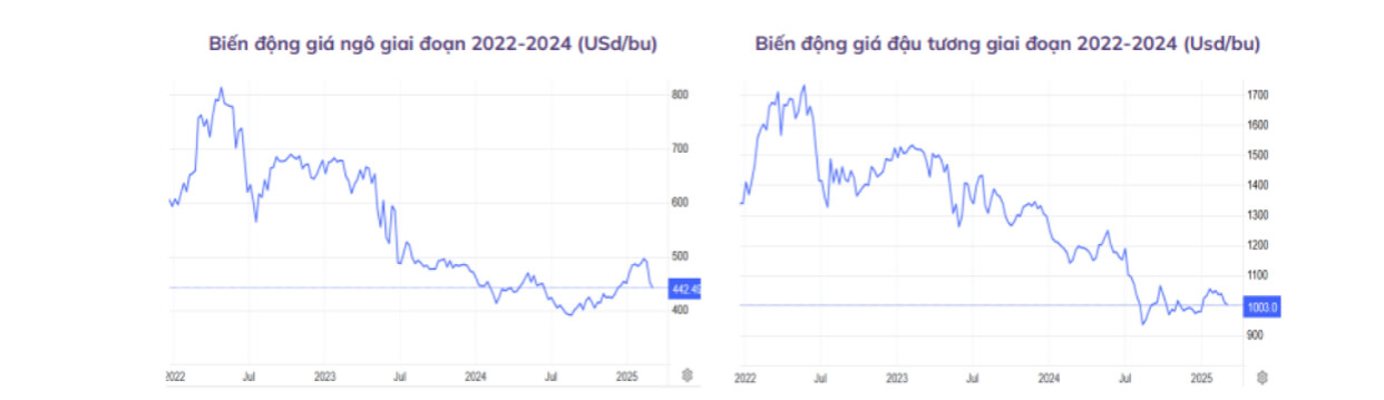 Tuy nhiên, biên lợi nhuận gộp năm 2025 có thể bị thu hẹp do giá nguyên liệu TACN dự báo sẽ tăng. Báo cáo tháng 2/2025 của USDA dự báo sản lượng ngô và đậu tương toàn cầu giảm, đẩy giá lên cao hơn, gây áp lực lên chi phí sản xuất TACN.