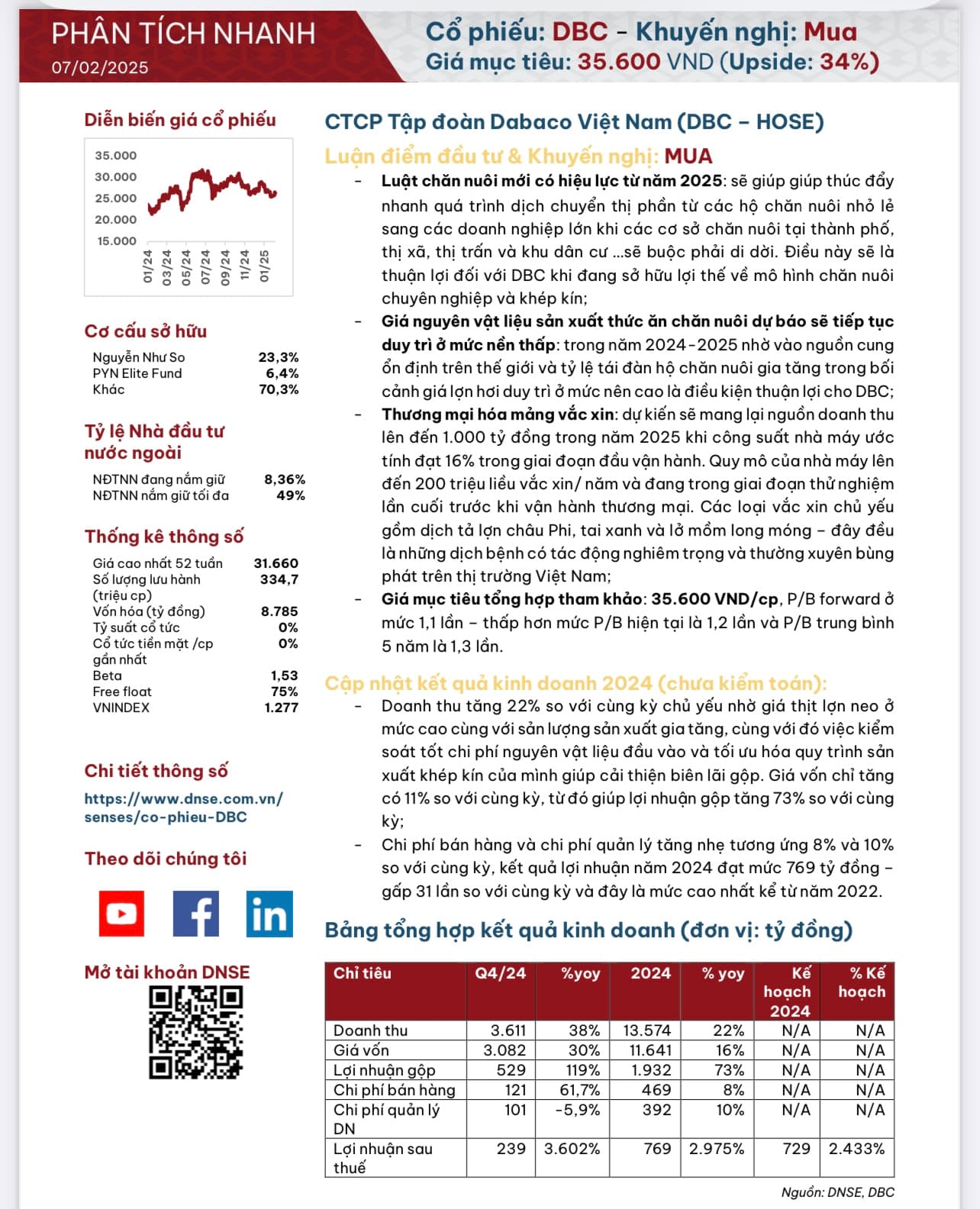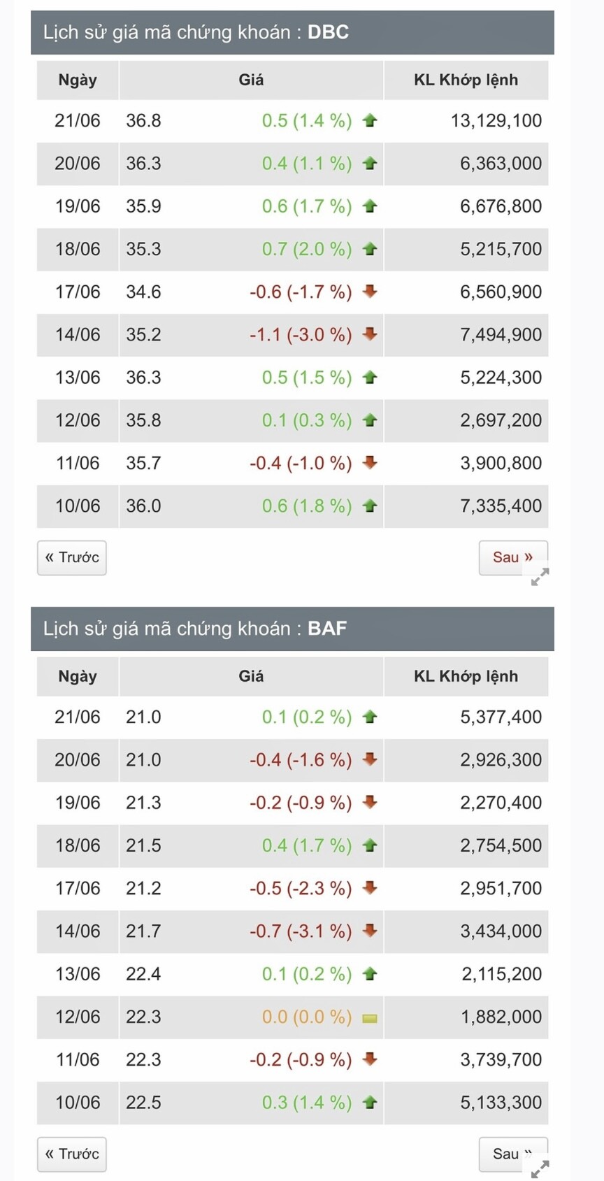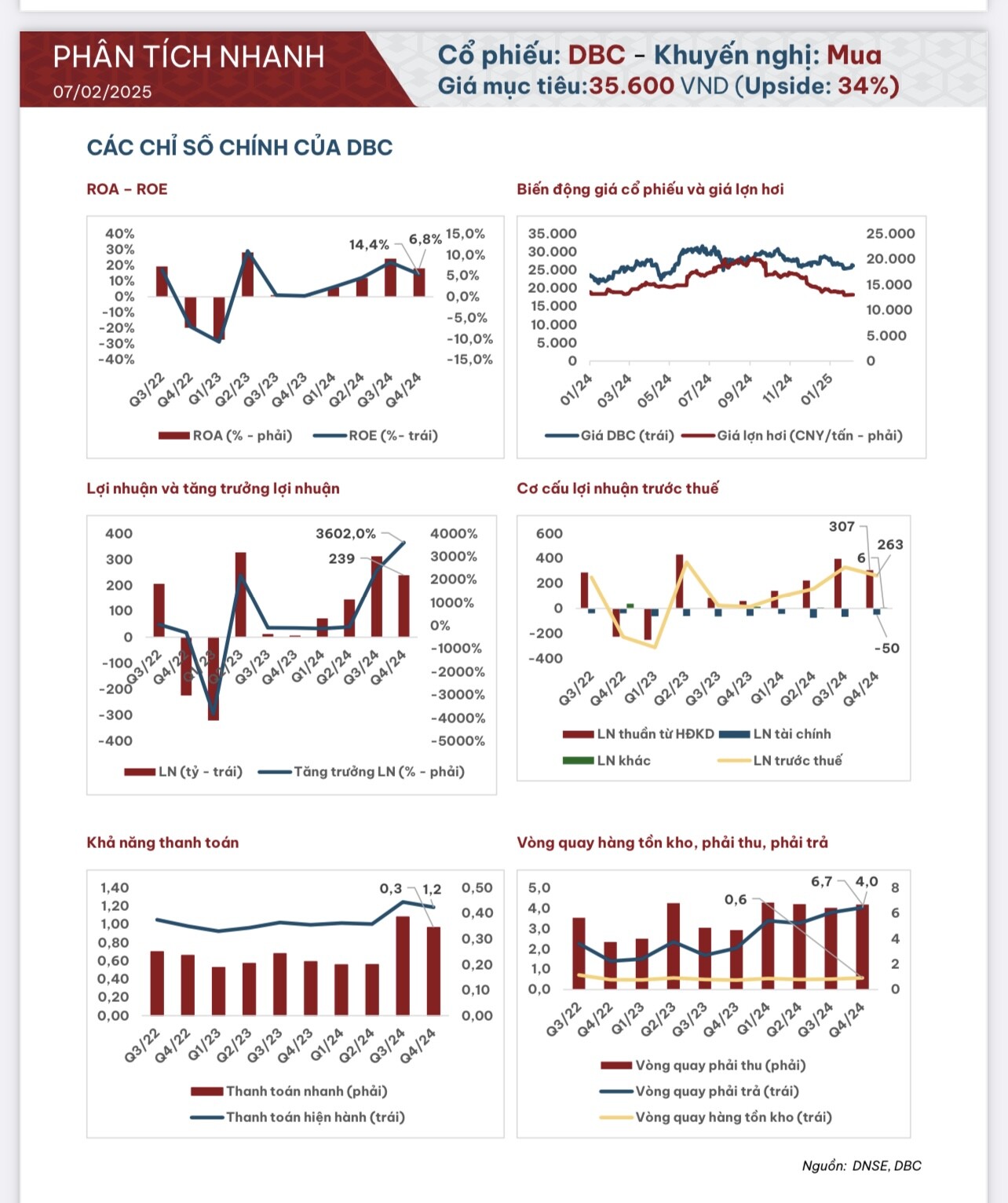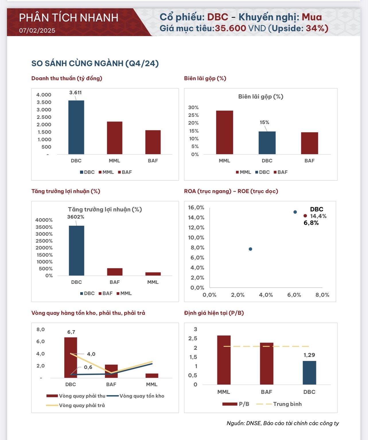 Tháng 6/2024 vừa qua giá DBC và BAF bác xem để cảm nhận. Đã có lúc DBC áp sát giá 37; trong khi đó BAF giá chỉ 21.x ; cho dù thời điểm đó chưa biết được kế hoạch đạt được lợi nhuận quá khủng của DBC năm 2024 đã ra báo cáo TC rồi nhé