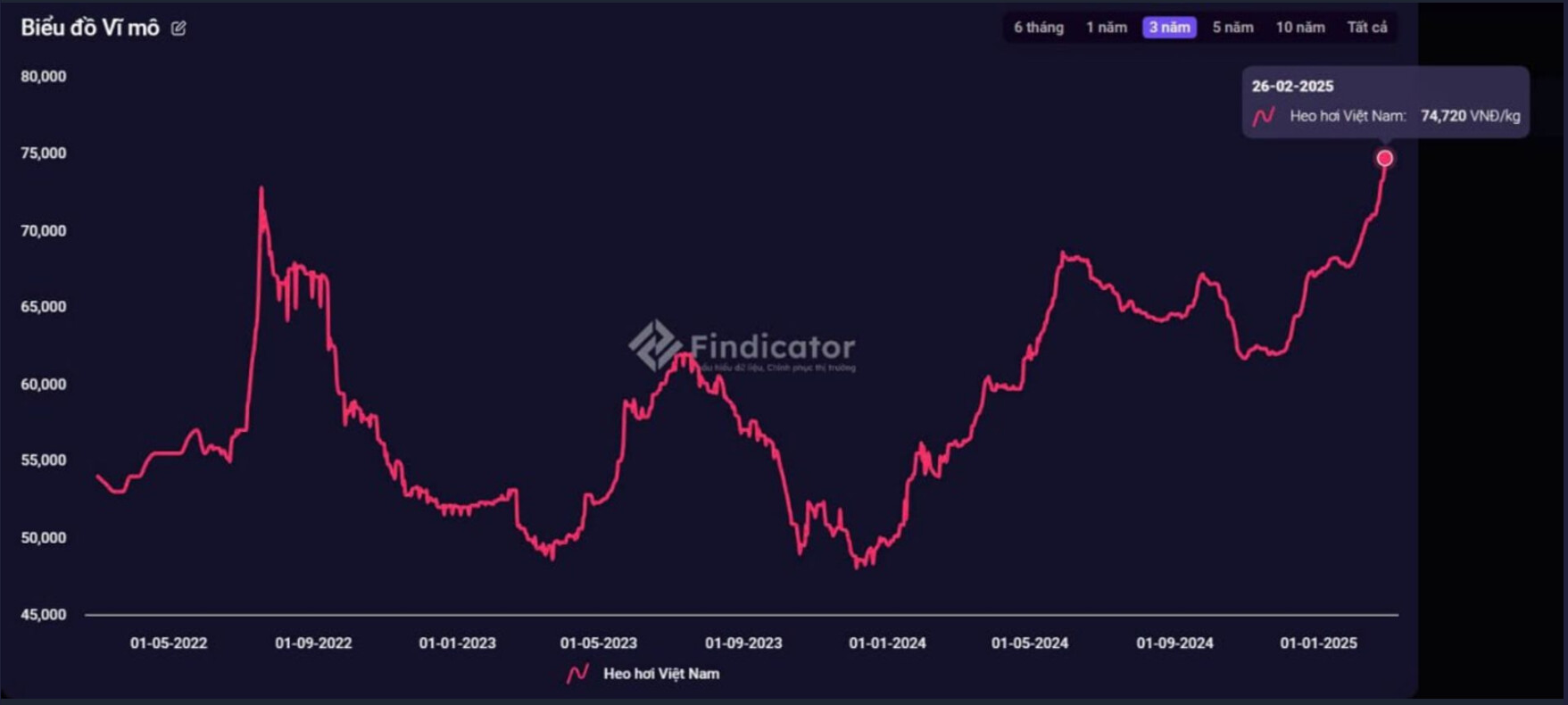 - Sau Tết 2025, giá heo dự kiến đạt mức 70.500 đồng/kg, tăng 30% so với cùng kỳ năm trước.