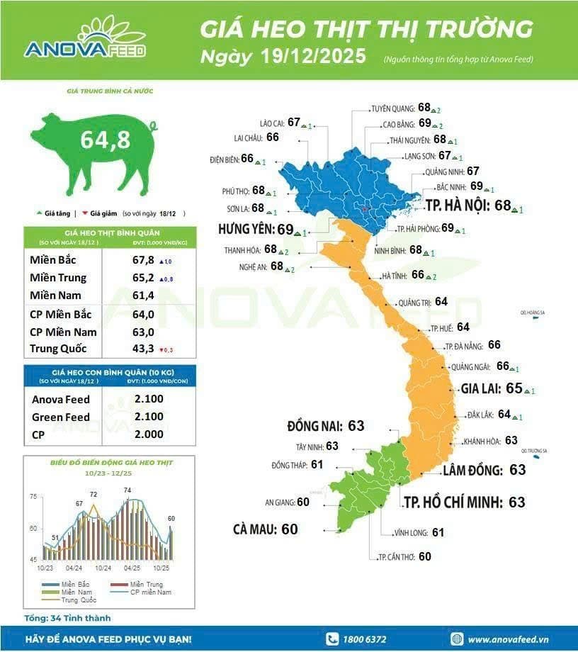 Báo cáo tình hình sản xuất, thị trường, xuất nhập khẩu nông lâm sản tháng 11 và 11 tháng năm 2025 của Cục Chuyển đổi số (Bộ Nông nghiệp và Môi trường) nêu rõ, đầu tháng 11, giá lợn hơi giảm do người tiêu dùng e ngại dịch tả lợn châu Phi. Tuy nhiên, giá lợn hơi tăng trở lại vào cuối tháng do nguồn cung hộ chăn nuôi nhỏ lẻ giảm mạnh.