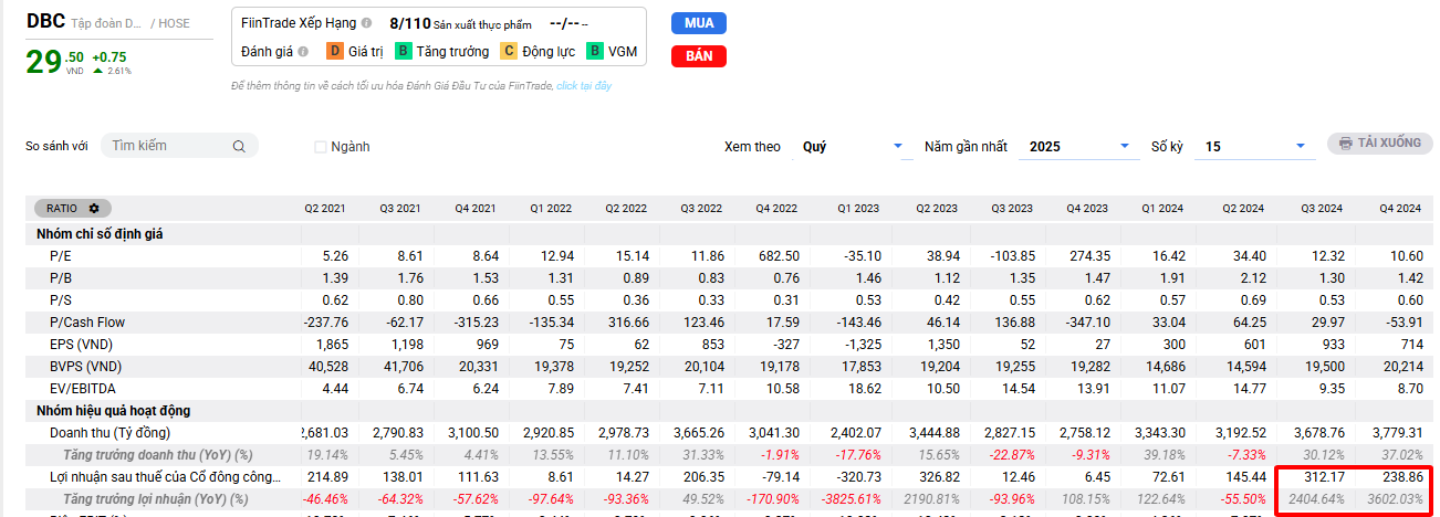 Dựa trên báo cáo tài chính Q4/2024, DBC đang có sự phục hồi mạnh mẽ sau giai đoạn khó khăn.