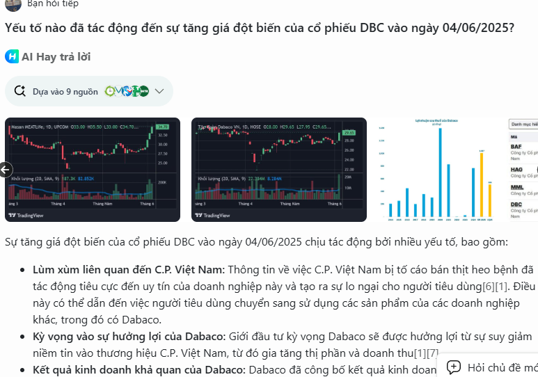 Sự tăng giá đột biến của cổ phiếu DBC vào ngày 04/06/2025 chịu tác động bởi nhiều yếu tố, bao gồm: