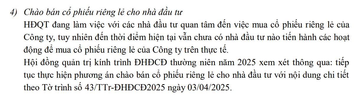 - Thứ tự các việc triển khai như sau: chia cổ tức>esop>PHRL.