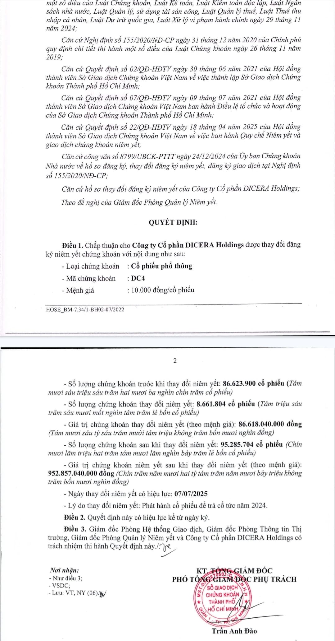 Cổ đông cũng được hưởng thành quả từ sự tăng trưởng này với mức cổ tức chi trả đạt 15%, phản ánh chính sách tài chính ổn định, minh bạch và ưu tiên lợi ích nhà đầu tư. Những kết quả tích cực năm 2024 là nền tảng vững chắc để DICERA Holdings bước vào năm 2025 với tâm thế tự tin, sẵn sàng bứt phá trong một hành trình phát triển mới - bản lĩnh hơn, quyết liệt hơn và nhiều khát vọng hơn.
