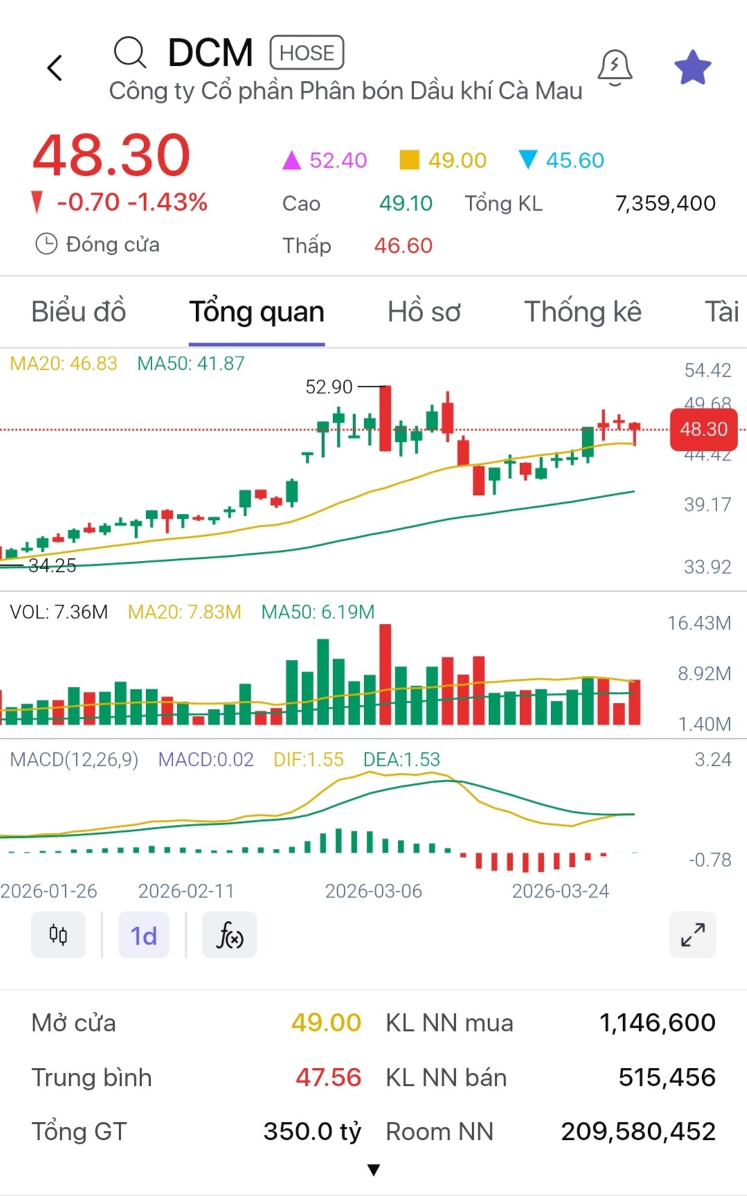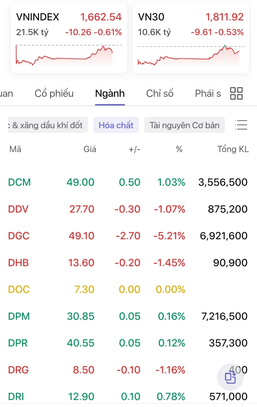 Bằng một cách nào đó, DCM vẫn giữ được màu xanh giữa một biển trời màu đỏ của HOSE.