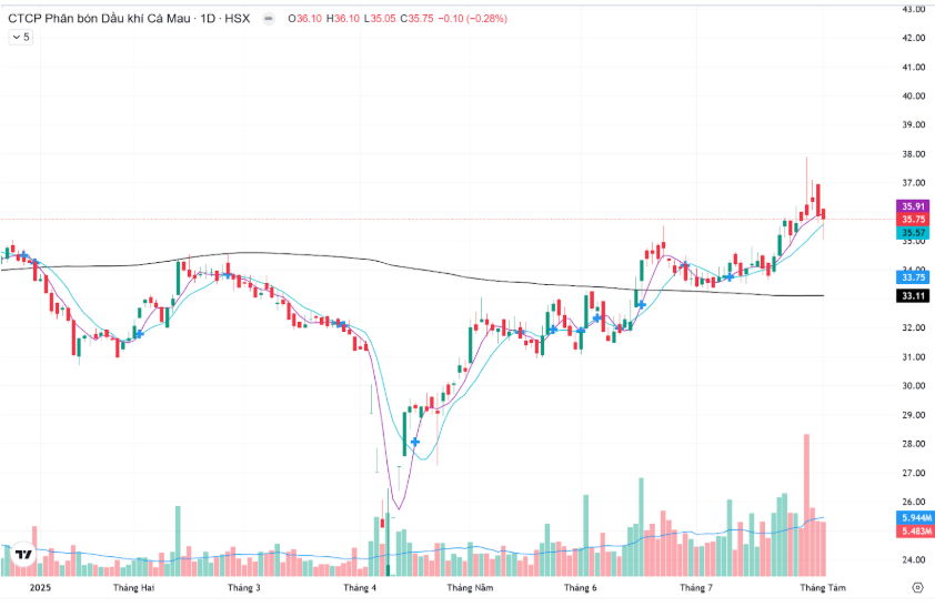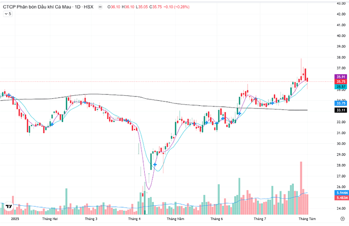Xét về kĩ thuật, sau khi break không thành công vào ngày 29/7 do ảnh hưởng từ thị trường chung, hiện DCM đang lùi về giao dịch quanh mốc 35.000đ/cổ phiếu. Chúng tôi kỳ vọng DCM sẽ xây được nền quanh vùng này và break thành công khi dòng tiền bắt đầu tìm về những doanh nghiệp có kết quả kinh doanh thực tế, thay vì tăng nóng bất chấp như giai đoạn vừa qua. Đây cũng là vùng đỉnh cũ được thiết lập hồi tháng 3/22 nên có lẽ sẽ cần nhiều thời gian hơn để có thể break thành công.