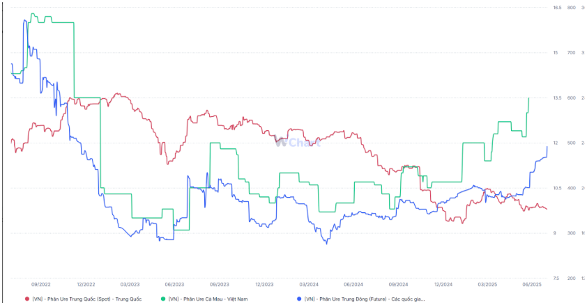 Ảnh 3: Tương quan giá Urea trong nước so với Urea Trung Quốc và Urea Trung Đông