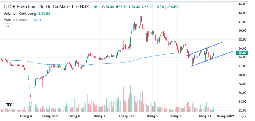 Xét về kỹ thuật, DCM đang đi trong một mức biên khá rõ ràng và đang đi ngang quanh vùng EMA200 – một vùng hỗ trợ dài hạn. Nhà đầu tư nhanh nhạy hoàn toàn có thể trading quanh mức biên này để tối ưu hóa lợi nhuận.