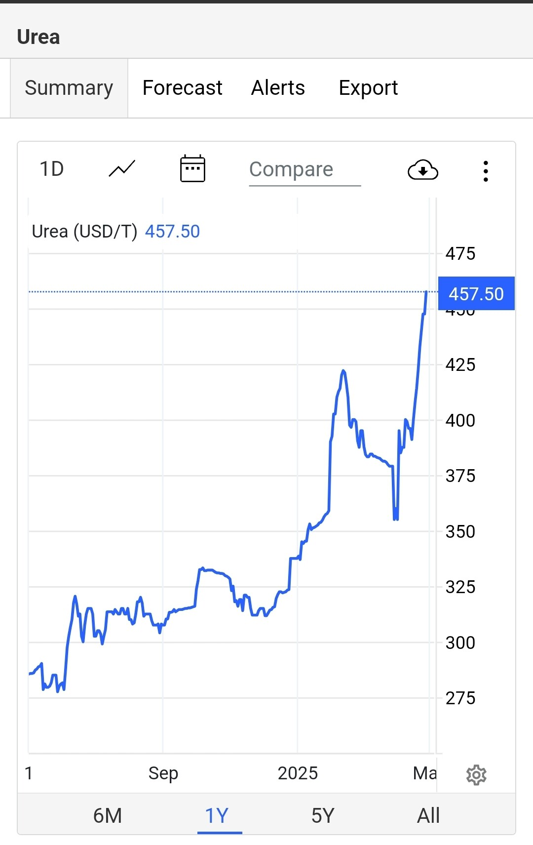 Và trong suốt gần năm qua, Ure tăng giá đều đều.